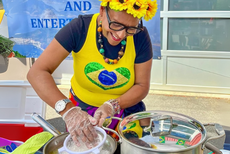 Chefe Sandra Rocha traz tapioca à feirinha de Bainbridge Island