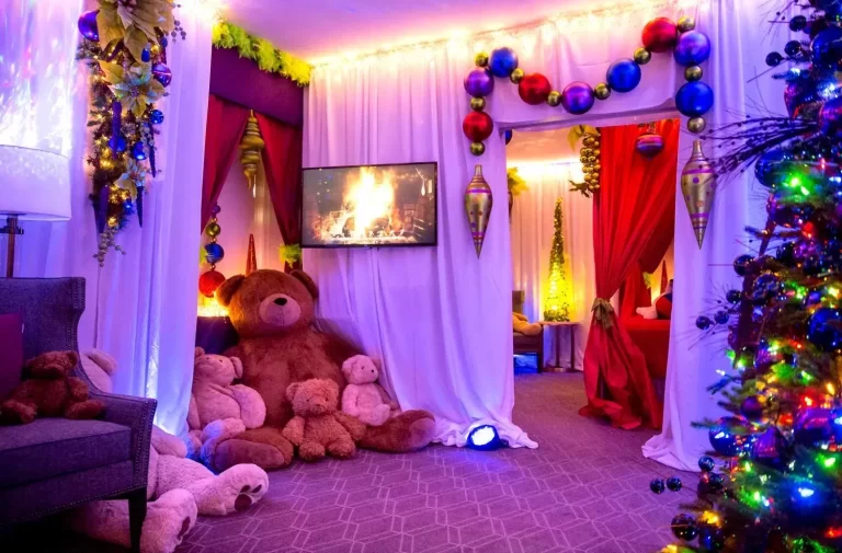 No coração do centro de Seattle, o Fairmont Olympic Hotel vira um cenário de filme durante as festas. No lobby, dezenas de árvores de Natal decoradas por artistas e organizações locais fazem parte do “Festival of Trees”, todas diferentes e cheias de significado. No interior do hotel, um quarto é completamente transformado no “Teddy Bear Suite”, onde ursos de pelúcia gigantes, luzes suaves e decoração aconchegante criam um ambiente perfeito para fotos, crianças e aquela sensação gostosa de Natal elegante. A combinação desses dois eventos traz uma experiência linda e tranquila, ideal para quem quer fugir das multidões e curtir algo mais intimista.