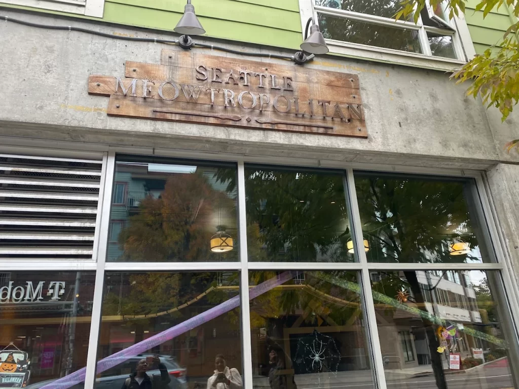 - O que oferece: Café com menu de bebidas e lanches, e um Cat Lounge onde você pode reservar sessões para interagir com gatos (alguns disponíveis para adoção com parceiros como Regional Animal Services of King County).
