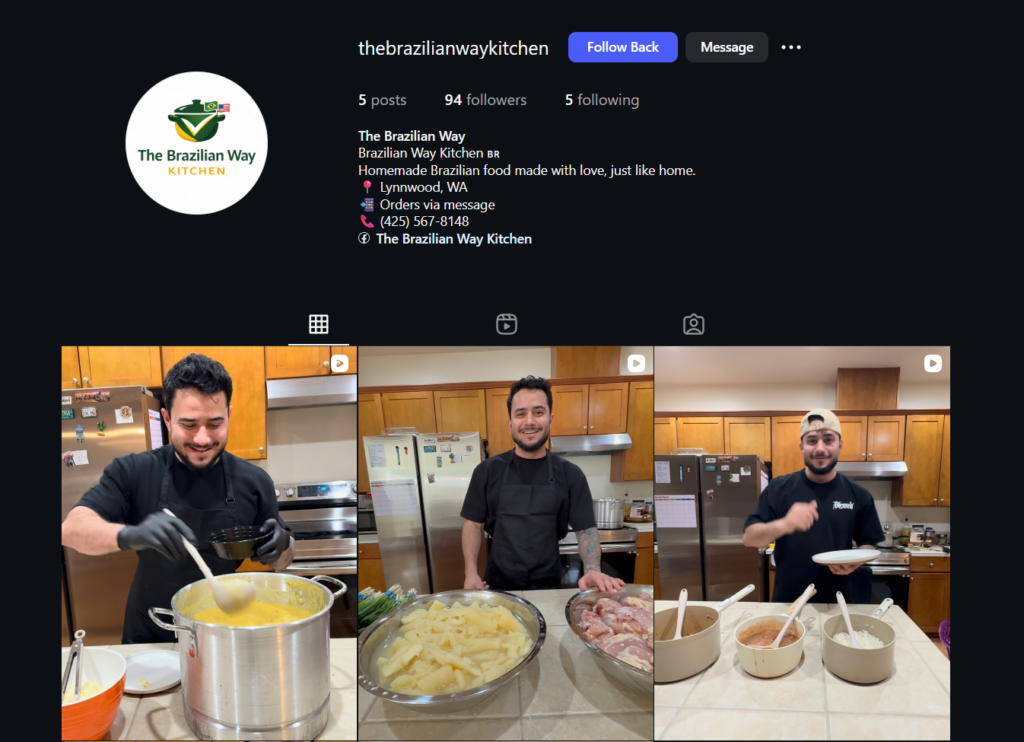 • A comunidade brasileira em Seattle ganhou uma nova opção de comida caseira em Bothell. No comando de Eduardo Theyllon, a The Brazilian Way Kitchen funciona com produção aos finais de semana e retirada local, próxima à saída 26. O cardápio muda semanalmente e inclui pratos tradicionais da culinária brasileira, preparados em casa com temperos naturais. Quer saber mais? Vem ver nosso novo post do blog ou acesse o instagram @thebrazilianwaykitchen.